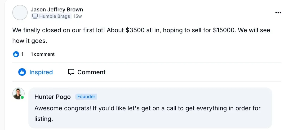 *These are not testimonials from AI Land Flipping - these are public testimonials from the industry to prove the Land Flipping model is viable.