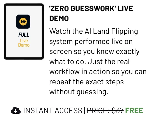 Watch the AI Land Flipping system performed live on screen, showing you EXACTLY what to do… so you can repeat the steps without guessing.